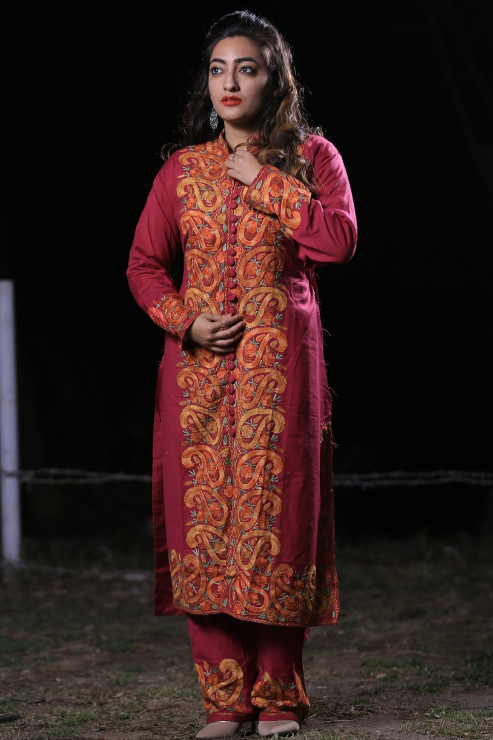 Aari Work, Sozni Work, Cotton, Woolen Unstitched Suit Fabric