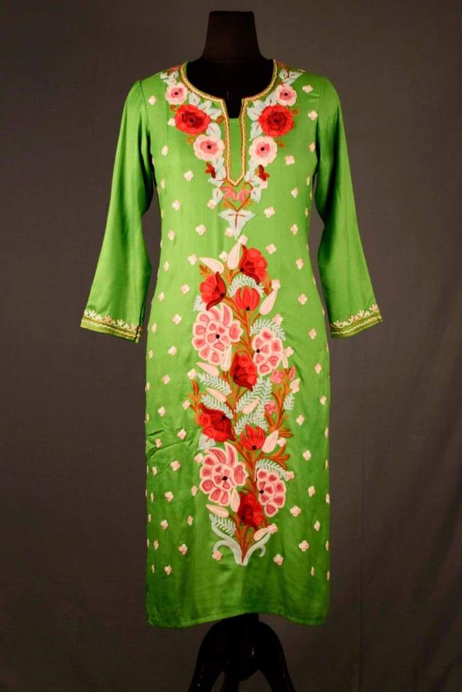 NEON GREEN COLOUR AARI WORK EMBROIDERED KURTI WITH NEW DESIGNER PAISLEYS PATTERN