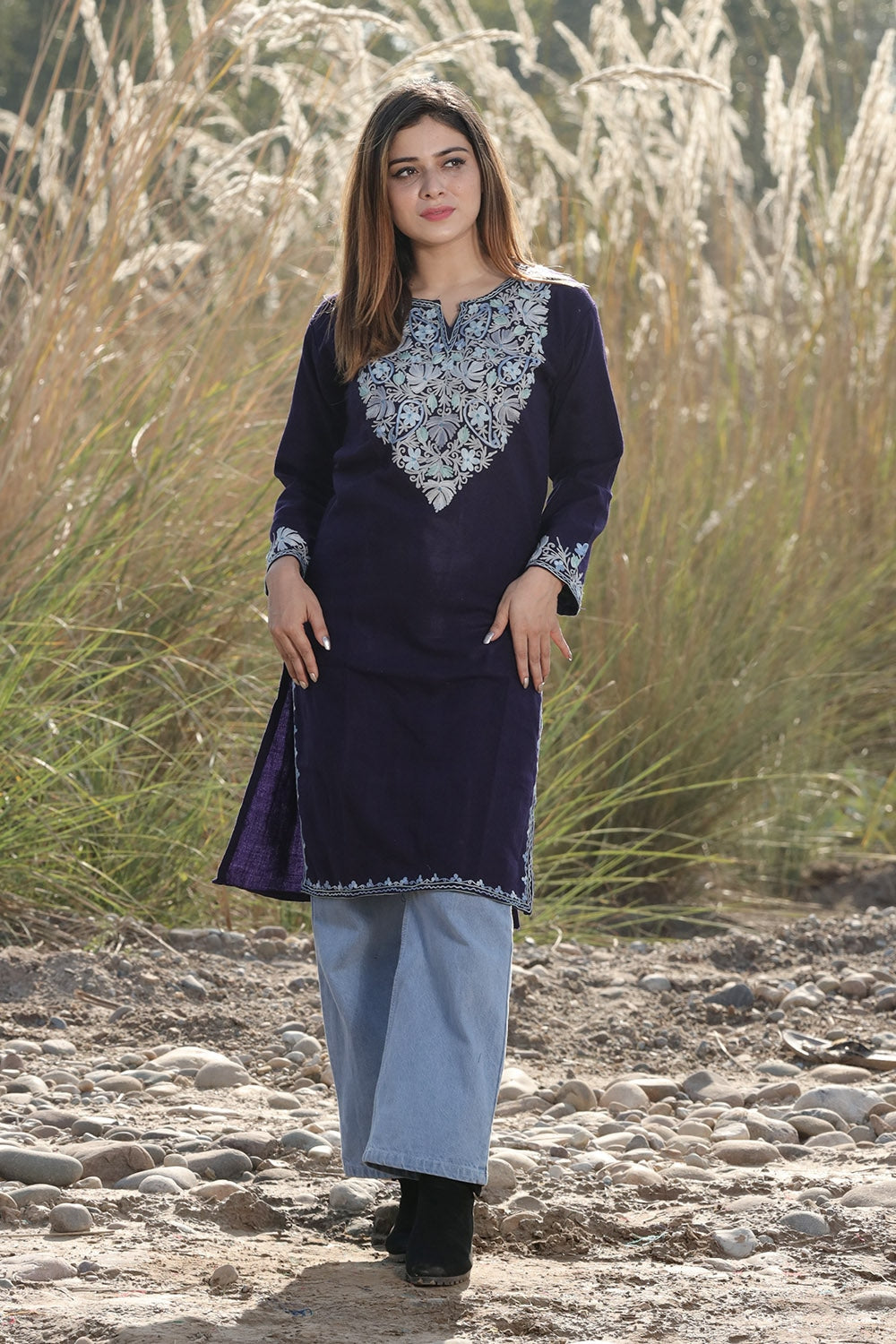 NAVY BLUE COLOUR AARI WORK EMBROIDERED KURTI WITH NEW DESIGNER PAISLEYS PATTERN